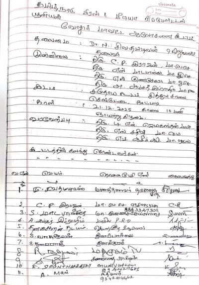 வரும் டிசம்பர் 30ஆம் தேதி சென்னையில் நடைபெற உள்ள நமது நிறுவனர் மற்றும் மாநில தலைவர் டாக்டர் மு.சிவதமிழவனின் 67ஆவது பிறந்த நாளை சிறப்பாக நடத்துவது என்றும், அந்த விழாவில் வேலூர் மாவட்டம் சார்பில் திரளாக நிர்வாகிகள் மற்றும் உறுப்பினர்கள் கலந்து கொள்வது என்று தீர்மானம் நிறைவேற்றப்பட்டது.