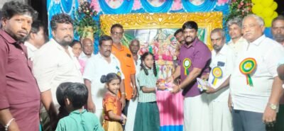 இதில் வெற்றி பெற்ற அனைத்து மாணவ மாணவிகளுக்கும் விழா குழுவினர் சார்பில் பரிசு மற்றும் கேடயம் உள்ளிட்ட கல்வி உபகரணங்களையும் வழங்கி வாழ்த்துக்களை தெரிவித்தார்.
