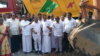 பின்னர் சாலைப் பணிகளை கொடி அசைத்து தொடங்கி வைத்து, மரக்கன்றுகள் நட்டு வைத்தார். இதில் திமுக நிர்வாகிகள், கழக தோழர்கள் பொதுமக்கள் கலந்து கொண்டனர்.