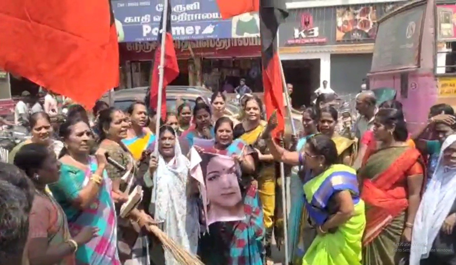 பிரபல திரைப்பட நடிகையும் பாரதிய ஜனதா கட்சியின் பொறுப்பாளருமான திருமதி குஷ்பு தமிழக அரசால் வழங்கப்பட்டு வரும் மகளிர் உரிமைத் தொகை ஆயிரம் ரூபாயை பிச்சை காசு என்று பேசி இருந்தார் இதற்கு கண்டனம் தெரிவிக்கும் வகையில் மயிலாடுதுறையில் திமுக மகளிர் அணி சார்பில் கண்டன ஆர்ப்பாட்டம் நடைபெற்றது அப்போது குஷ்புவின் உருவப்படத்தை விளக்கமாற்றால் அடித்து கண்டன கோஷங்கள் எழுப்பினர் தொடர்ந்து நடிகை குஷ்புவின் உருவ பொம்மையை எரித்து அதற்கும் செருப்பு மற்றும் விளக்கமாக அர்ச்சனை செய்தனர் இவற்றை காவல்துறையினர் தடுக்காமல் வேடிக்கை பார்த்த சம்பவம் அதிர்ச்சியை ஏற்படுத்தியுள்ளது.
